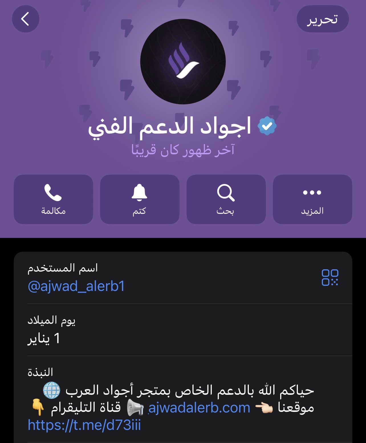 في حال لم تتمكن من الوصول إلى الدعم الفني، هذه معلومات حسابنا على التليجرام 📩